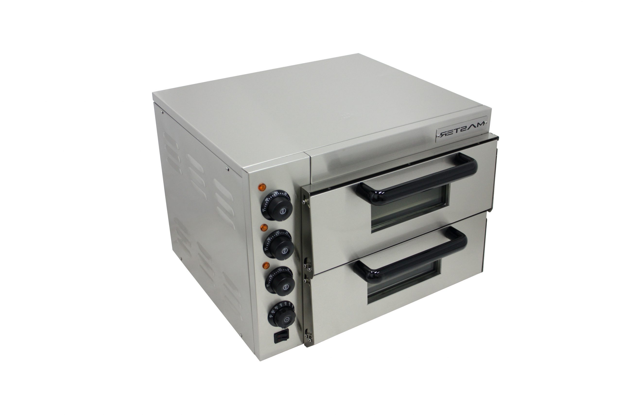 • Warm air circulation • High quality stainless steel frame • Cooking chambers have bulb lighting and glass doors • Adjustable temperature controls for each chamber • MA560PO has one cooking chamber (single deck) • MA560PO-D has two cooking chambers (double deck) • 5-60 minute timer dial • Energy saving